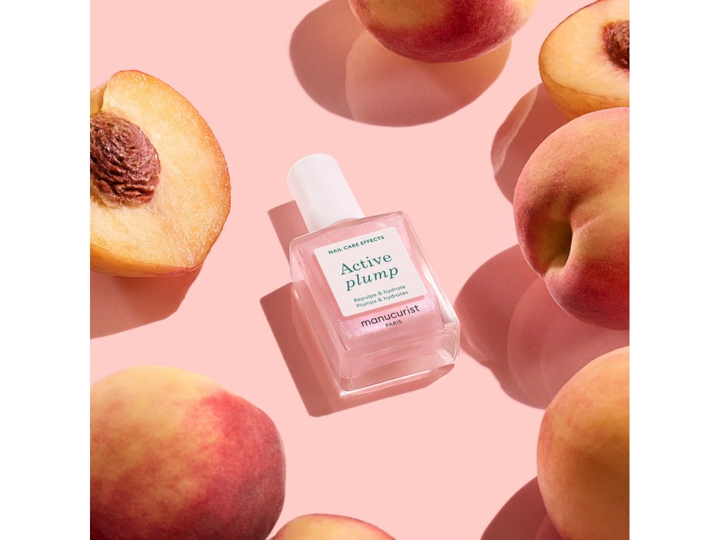Vyplňující a pečující lak na nehty 2v1 obohacený o kolagen a výtažky z broskví, které pomáhají hydratovat, vyživovat a opticky vyplnit nehty.
